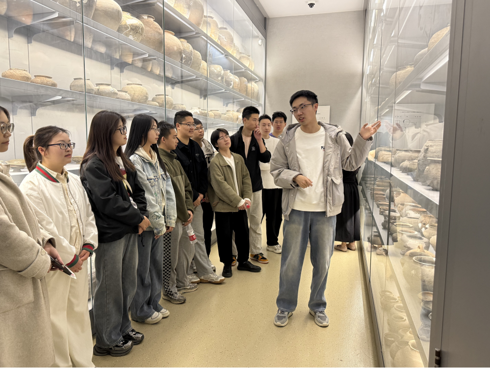 在众多陶瓷藏品中,不乏国宝级文物,明代“釉里红岁寒三友纹梅瓶”和元代“萧何月下追韩信青花梅瓶”皆为镇馆之宝。工作坊的第二堂课就选在这个宝藏博物院。参观过程中,同学们认真聆听讲解,纷纷拍照留影,记录下一件件精美的宝贝,大家深深地陶醉其中,仿佛沉醉在瓷器巅峰的盛世华彩。此次参观不仅开阔了同学们的视野,深化了对中华优秀传统文化的理解,从中领略的不仅是文物的艺术之美与历史之重,更是一种沉淀的文化力量与智慧传承。
