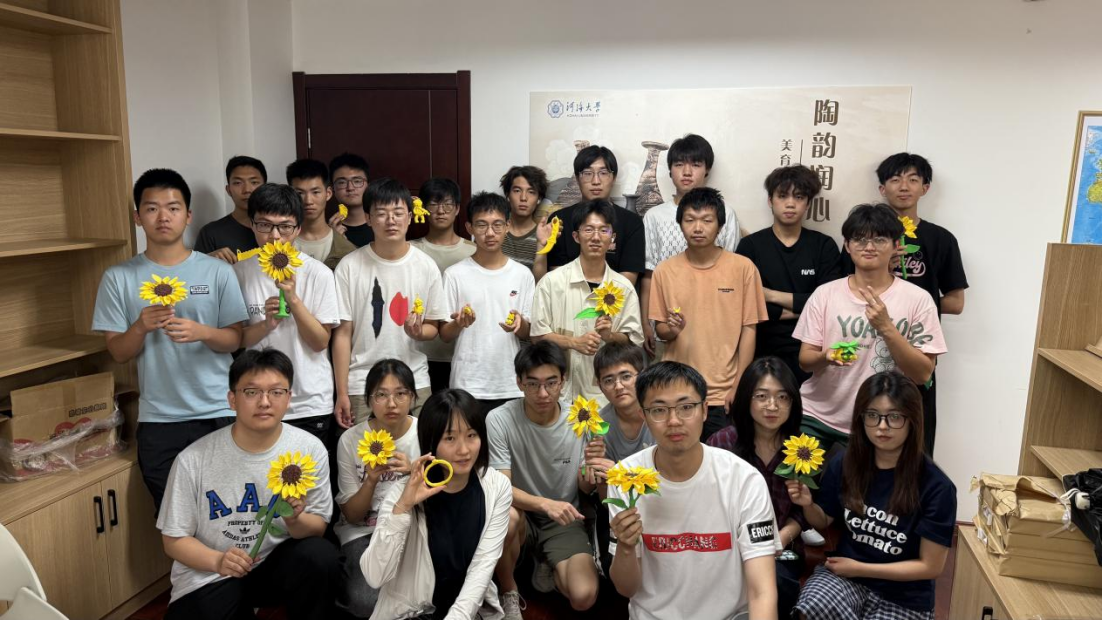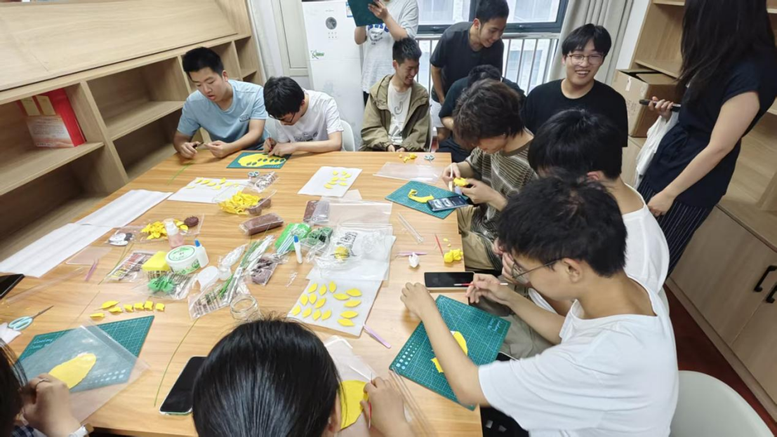 陶艺工作坊的系列活动第三节课,考虑到大多数同学是初次接触陶艺手工,老师带领大家一起完成一件难度不大的泥塑作品——采用超轻黏土来制作一朵向日葵。老师先后展示了将粘土材料塑造成形的技巧以及一些基础的工具使用。同学们跟着老师一步步制作,尽管每个人的手法都略显生疏,但在老师的耐心指导下,大家逐渐找到了感觉,手中的黏土也仿佛被赋予了生命,你帮我做一片叶子,我帮你做一片花瓣,大家分工协作,一朵朵向日葵逐渐成形。虽然这些作品可能在技艺上还不够完美,但它们却承载着团队合作的快乐和美好。最终捧在同学们手里的,不仅是成型的向日葵,更是一份独属于大家的、温暖又珍贵的记忆。