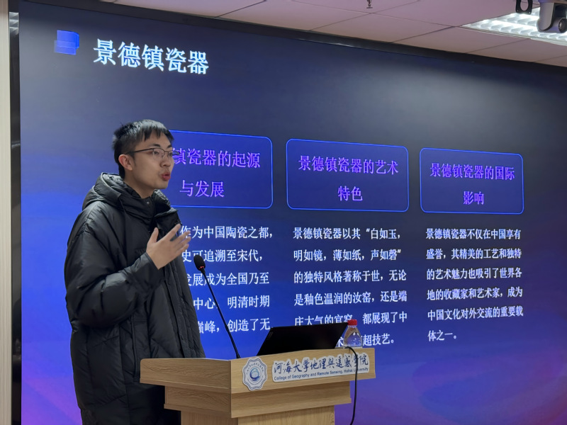 “陶韵润心”美育教育工作坊第一课由地理与遥感学院辅导员蒋万缕主讲。蒋老师具有多年陶瓷艺术研究和实践经验,对陶艺有着深刻的理解和独特的见解。课堂上,他从原始社会的陶器诞生讲到后续各时期的不断演变发展,从陶器最初的简单、质朴讲到如今的繁复、华美,引领同学们开启了一场跨越千年的陶文化之旅。