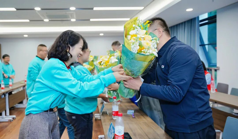 老师们的深情话语让现场校友备受感动,大家纷纷敞开心扉,分享自己毕业后的奋斗经历与感悟。随后,校友代表向各位授课老师献上鲜花,一束束鲜花承载着校友们对恩师的感恩之情,也见证了师生之间深厚的情谊。同时,2002级资环校友还向学院赠送了寓意“向光而行、分享荣光”的工艺品——燃烧的向日葵,以此表达对母校和学院培养的感谢,也寄托了对学院未来发展的美好祝愿。