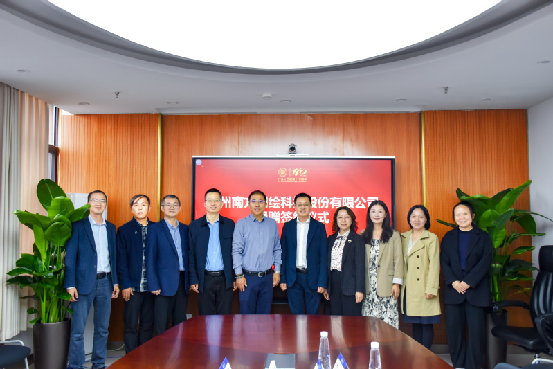 为深化校企协同合作,凝聚创新资源助力学科发展与人才培养,11月1日,河海大学地理与遥感学院与广州南方测绘科技股份有限公司举行“聚力创新,智绘未来”捐赠签约仪式。南方测绘公司副总裁、教育事业部总经理郭宝宇、沪宁分公司总经理袁大伟、教育事业部总工寻林辉、沪宁分公司教育事业部总监任大勇、集团沪宁分公司市场经理于武斌;地理与遥感学院院长周丰、国内合作发展处副处长兼教育基金会办公室副主任李维、地理与遥感学院副院长杨英宝、学院团委书记雷一帆参会,会议由学院党委书记孔祥冬主持。