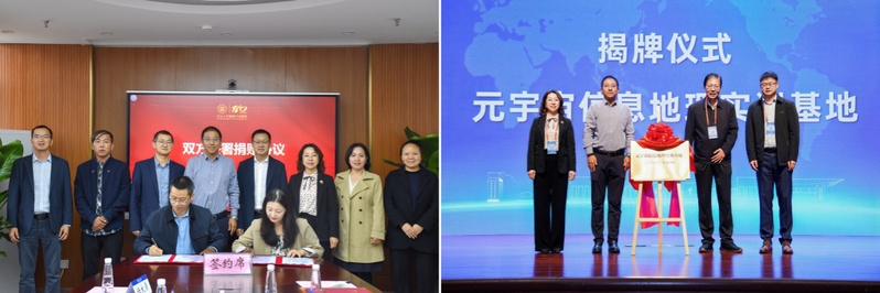 在双方参会嘉宾的共同见证下,李维与袁大伟共同签署了捐赠协议。此次专项捐赠涵盖高端虚拟仿真实验设备等教学资源,将为学院实践教学体系升级、人才培养质量提升注入强劲动力。同时,双方于全国地理科学类一流本科专业建设研讨会期间举行元宇宙信息地理实训基地揭牌仪式,标志着校企合作迈入实质性落地阶段。