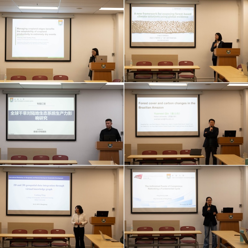 11月30日,“地理与遥感可持续发展国际研讨会”在香港大学举行,三校专家聚焦地理学科前沿开展深入研讨。香港大学张晓玲教授解读农田边缘管理与干旱适应性的关联,彭丽青助理教授与曾昭齐博士分别围绕森林在应对气候变化中的作用与全球干旱对陆地生态系统生产力的影响展开论述;河海大学秦元伟教授分享对亚马逊森林碳与森林覆盖率的变化,丁林芳教授的分享聚焦基于知识图谱的地理空间数据多维融合技术;香港城市大学韩平教授分享对氮循环过程的研究。精彩纷呈的学术报告展现了三校地理学的多元研究视角。