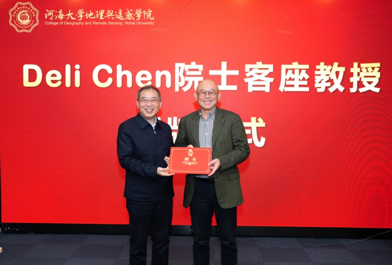 2025 年 12 月 17 日,国际知名土壤学家、澳大利亚科学院院士、墨尔本大学杰出教授陈德利(Deli Chen)客座教授聘任仪式在河海大学举行。河海大学党委书记杨桂山教授、地理与遥感学院院长周丰教授、党委书记孔祥冬,以及师生代表、北京大学相关领域专家共同见证了这一重要时刻。