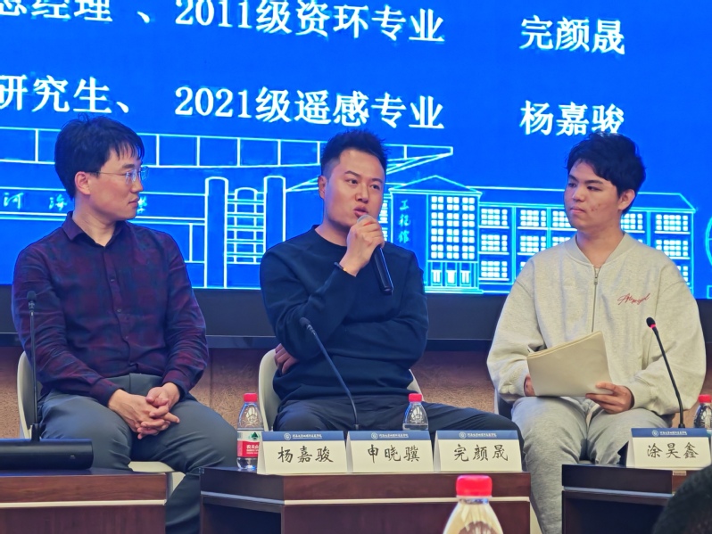 活动以交流分享与问答互动相结合的形式展开,三位校友结合自身学习、工作与科研经历,为在场同学带来干货满满的生涯指导。申晓骥校友聚焦科研与学术发展道路,讲述了自身从河海学子到高校研究员的成长历程,鼓励有意向深造的同学保持科研热情,在专业领域精耕细作,在学术探索中实现自我价值。完颜晟校友深耕水利科技领域,结合多年行业从业经验,分享了从校园到职场的转型心得,他叮嘱同学们夯实专业基础,立足水利与地理信息行业特色,在实践中积累核心竞争力。杨嘉骏以在校学长的视角,分享了本科阶段学习规划、科研竞赛参与及考研升学的实用经验,并为低年级同学梳理学业与就业衔接的关键要点,解答升学备考中的实际困惑。