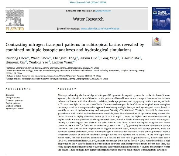 陈睿东,地理学博士,讲师。主要从事氮水循环观测与模拟研究,综合采用野外采样、模型模拟、地理空间分析等方法开展局域、流域和区域尺度的水文过程和氮素迁移转化相关研究。共发表SCI论文9篇,授权国家发明专利3件,其中以第一作者/通讯作者在Water Research等期刊发表SCI论文5篇。作为学术骨干参与国家水体污染控制与治理专项、国家重点研发计划、中科院战略性先导科技专项等项目4项。