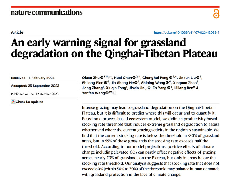 3. Fu, J., Jian, Y.W., Wu, Y.L., Chen, D.J., Zhao X., Ma, Y.H., Niu, S.W., Wang, Y.F., Zhang, F.L., Xu, C.X., Wang, S., Zhai, L.M., Zhou, F.* (2021) Nationwide estimates of nitrogen and phosphorus losses via runoff from rice paddies using data-constrained model simulations. Journal of Cleaner Production 279, 123642.