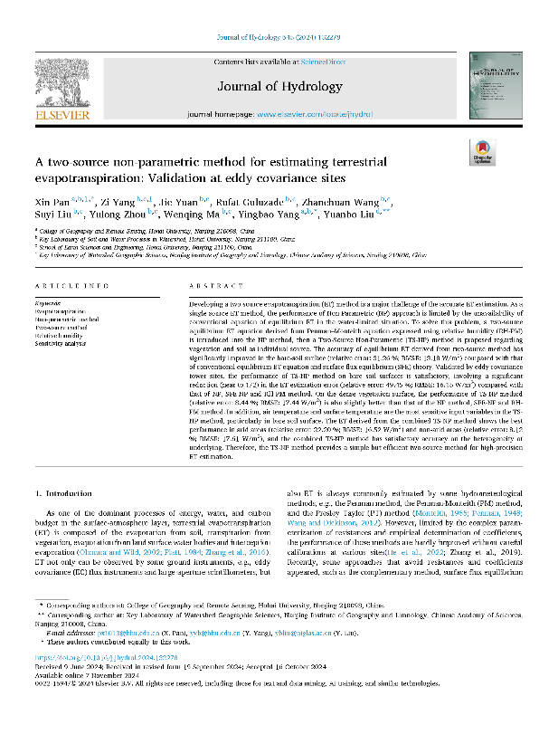 Pan, X., You, C., Liu, Y., Shi, C., Han, S., Yang, Y., & Hu, J. (2020). Evaluation of satellite-retrieved evapotranspiration based on a nonparametric approach over an arid region. International Journal of Remote Sensing, 41(19), 7605-7623.(三区 SCI)