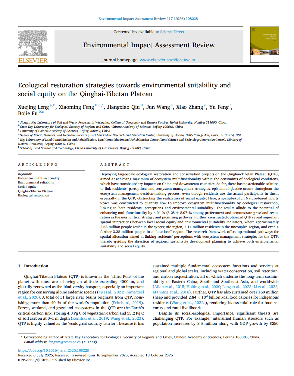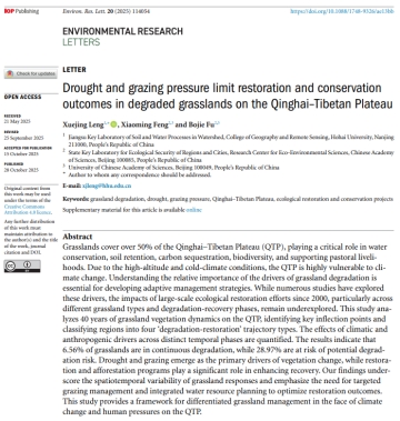 冷雪静,讲师。2015-2019年本科就读于南京大学地理与海洋科学学院,2019-2024年博士就读于中国科学院生态环境研究中心。主要研究方向为生态系统生态学与生态遥感,近期重点关注人地耦合系统优化和“生态系统结构与过程-服务-功能-人类福祉”级联关系。在国内外核心期刊上发表论文12篇。参与国家自然科学基金重大项目、第二次青藏高原科学考察研究、国家科技部“十四五”重点研发计划项目课题。曾获北京市优秀毕业生、国家奖学金等荣誉。