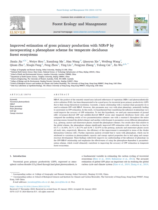 2020.09-2024.11 香港大学(生态遥感,博士)